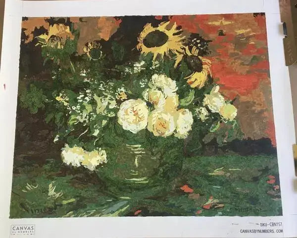 Loved the picture online. Overall it was a pleasure to paint. Paint was good. Used the recommended thinner. A lot green but the flowers pop.