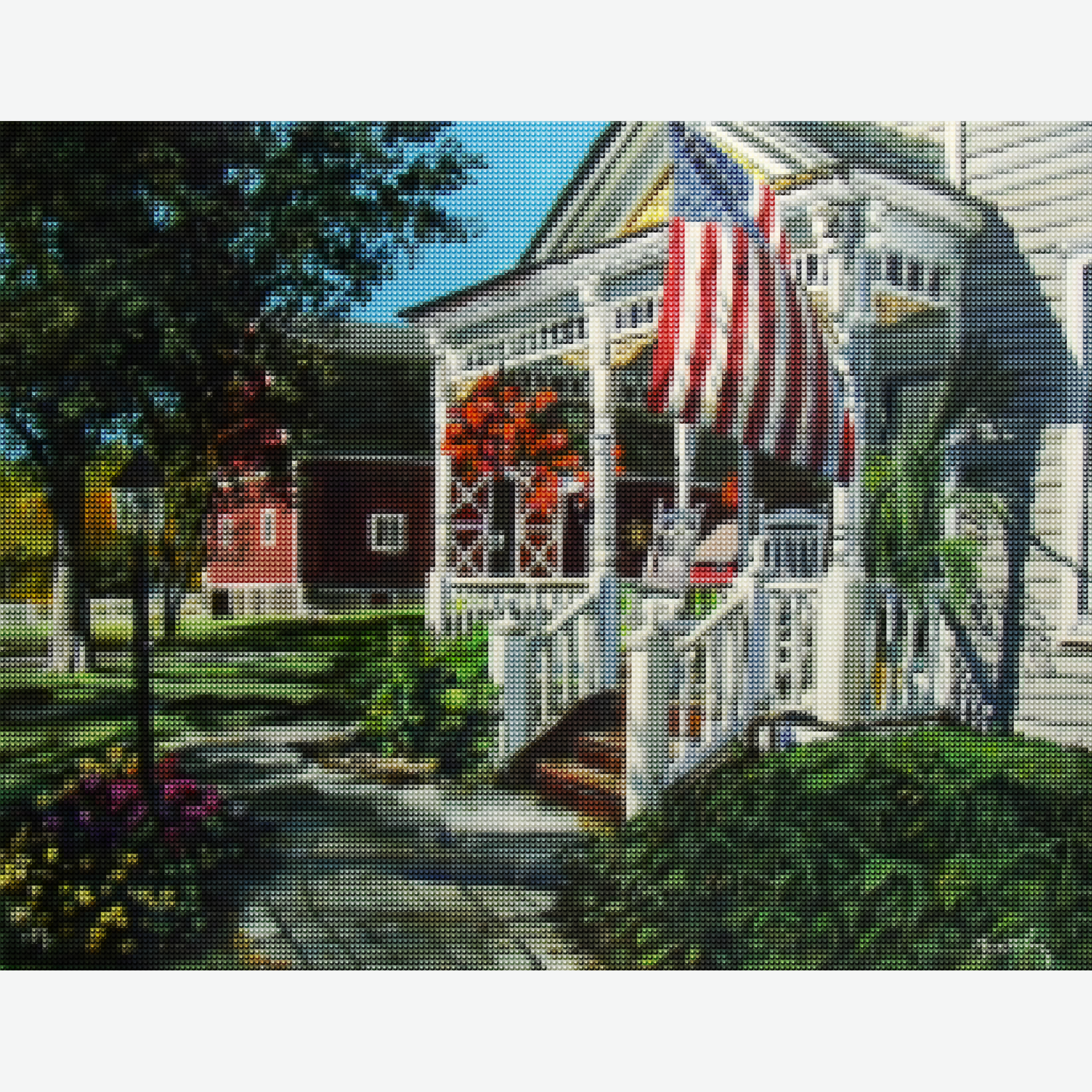Tauchen Sie ein in den Charme der Kleinstädte Amerikas mit unserem "An American Dream" Diamantmalset, inspiriert von William Brodys gefeierter Darstellung der Americana. Dieses Design fängt ein makelloses weißes Haus mit einer lebhaften amerikanischen Flagge ein und verkörpert den Geist des Patriotismus und die Einfachheit des Lebens in einer Kleinstadt. Perfekt für Kunst- und Geschichtsbegeisterte, verstärkt jeder Diamant die Tiefe und Brillanz dieser nostalgischen Szene.