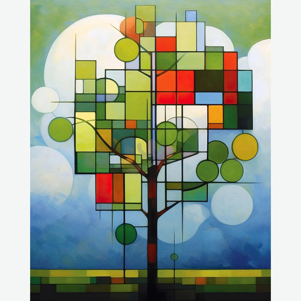 Bauhaus Green Tree diamond painting for abstract design lovers