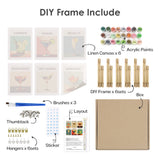 This kit contains six mini canvases to paint along with acrylic paints, brushes, reference sheets, and instructions.