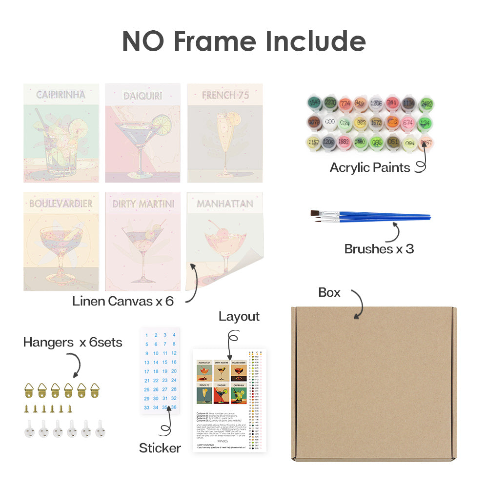 This Mini Paint by Numbers set contains iconic drinks like Caipirinha, Daiquiri, French 75, Boulevardier, Dirty Martini, and Manhattan, and is perfect for anyone who loves to craft while appreciating the art of mixology.