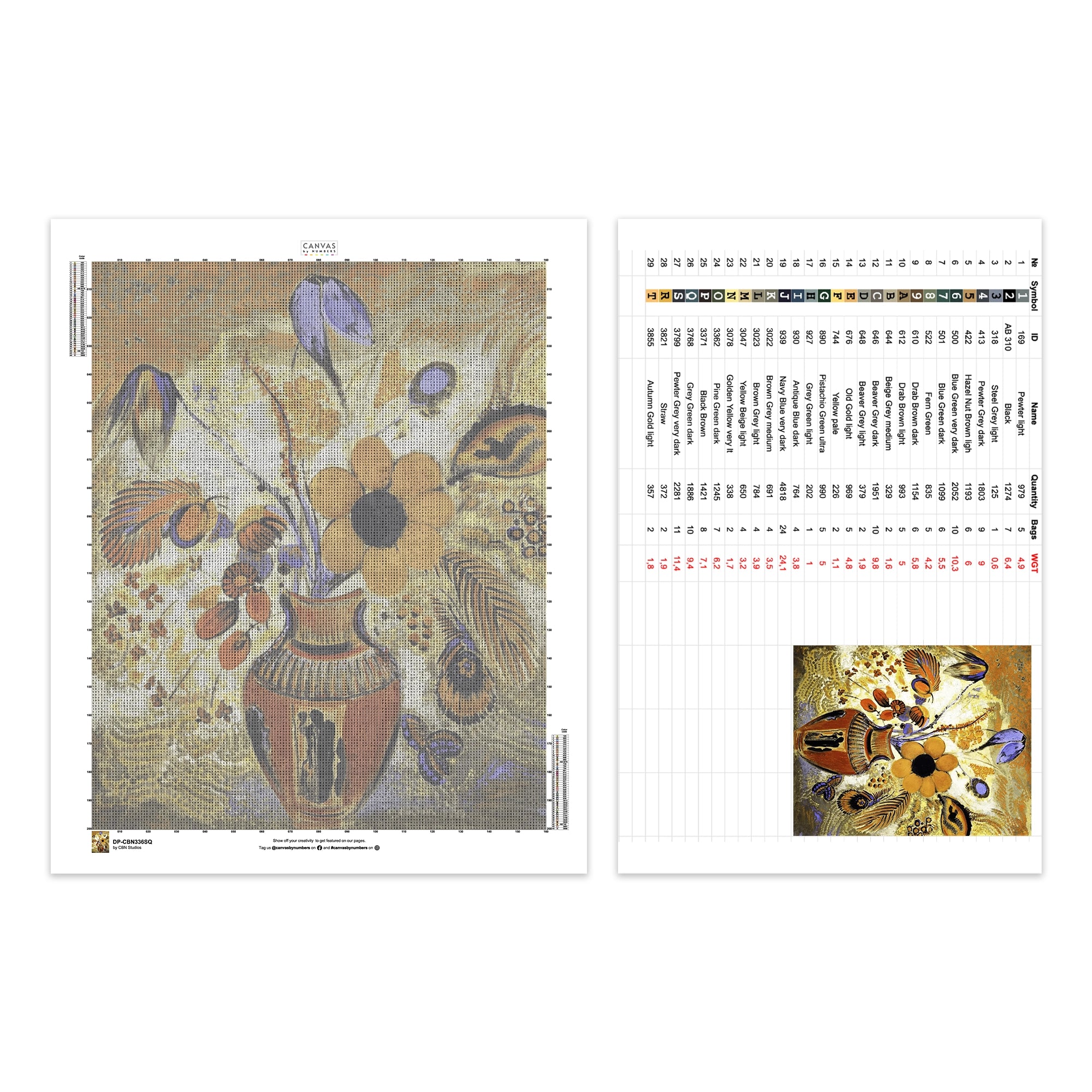 Celebrate the artistry of Odilon Redon with the "Etruscan Vase with Flowers" diamond painting kit. This project captures the delicate balance between ancient charm and blooming flora, offering a meditative and creative experience. Ideal for art enthusiasts and history lovers, this kit brings a touch of classical sophistication and natural beauty to your home.