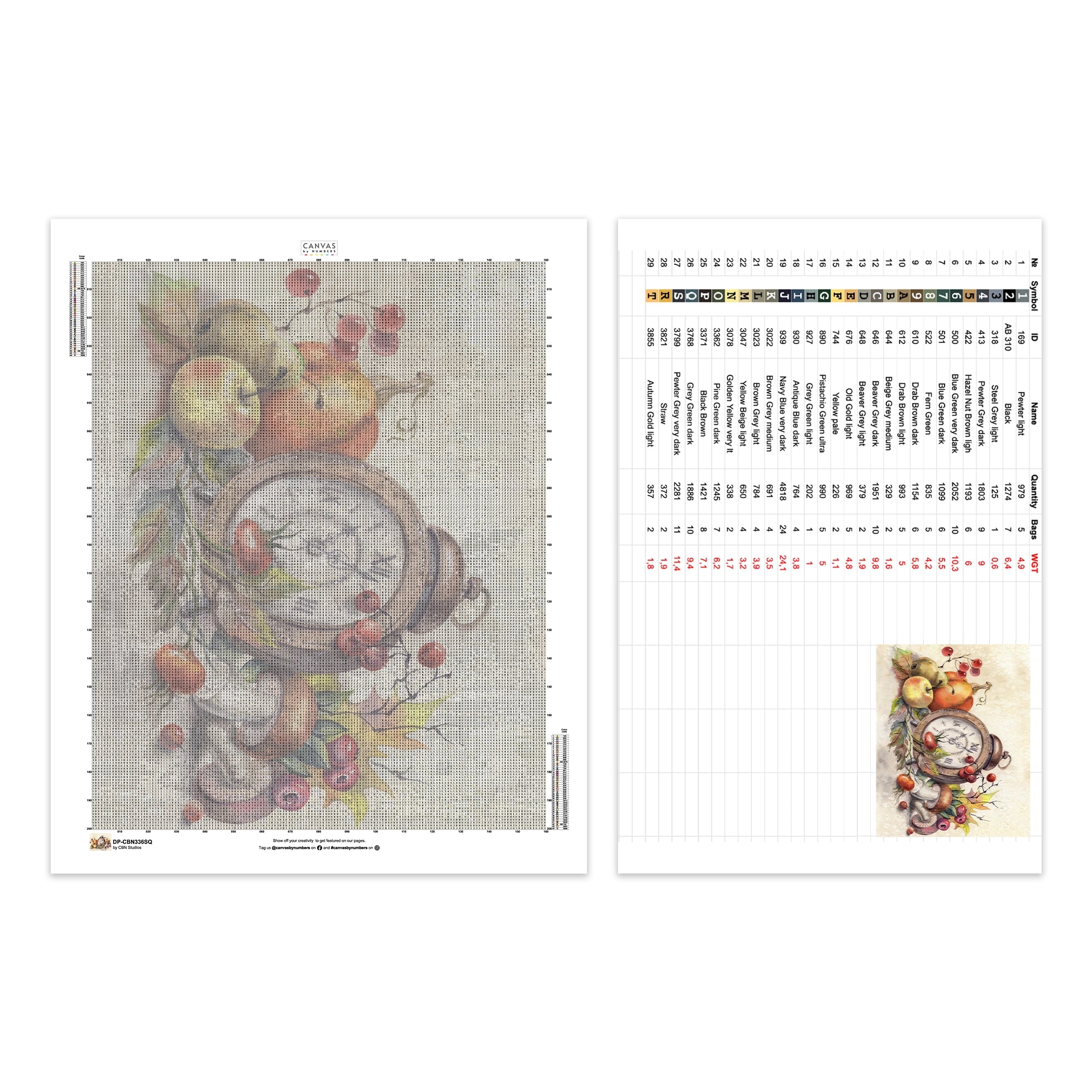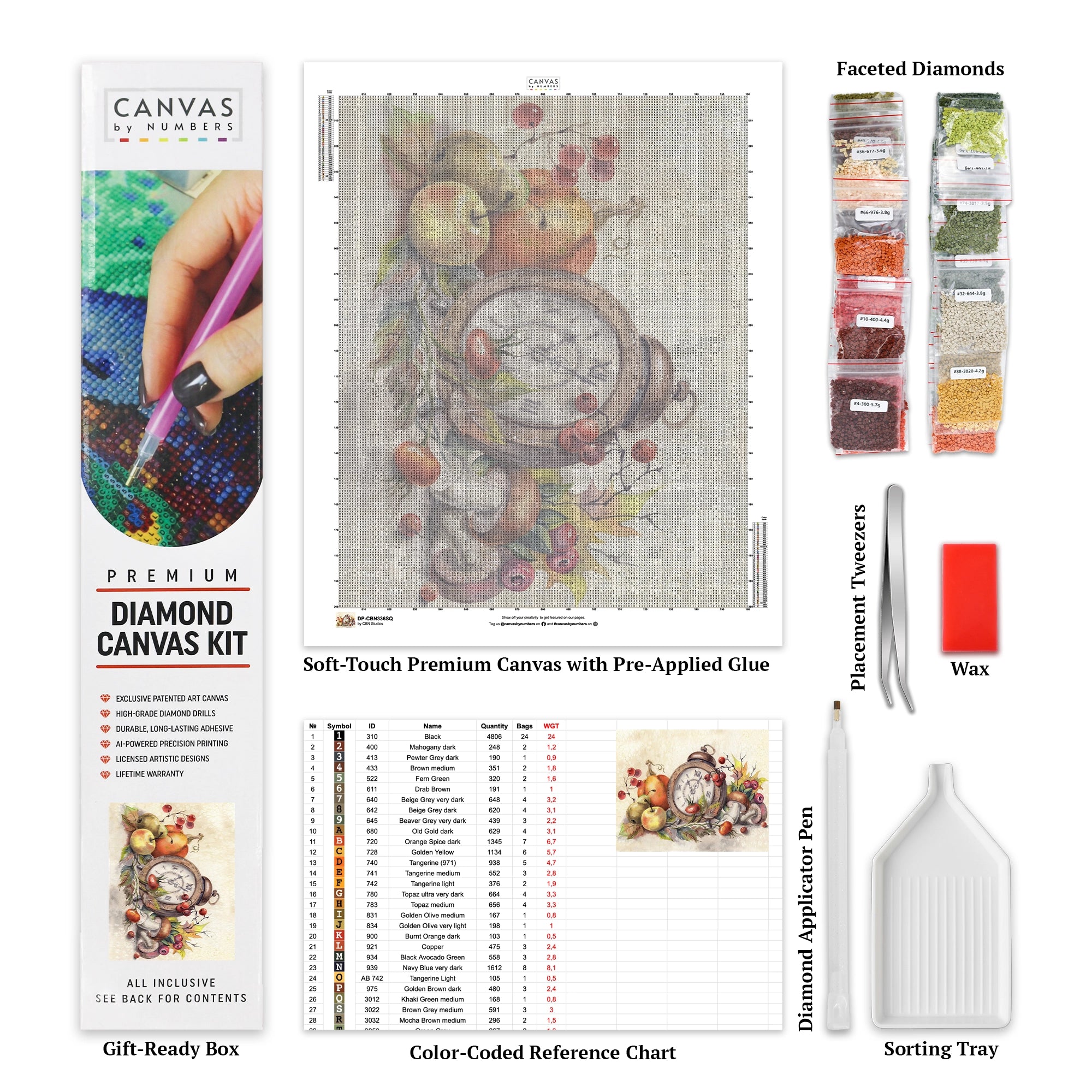 Embrace the warmth and charm of the harvest season with our "Harvest Time" diamond painting kit. This design showcases an antique clock nestled among a bountiful arrangement of fruits, mushrooms, and colorful autumn leaves, celebrating the essence of fall. Perfect for crafters of all skill levels, each diamond placed brings depth and brilliance to this intricate still-life scene.