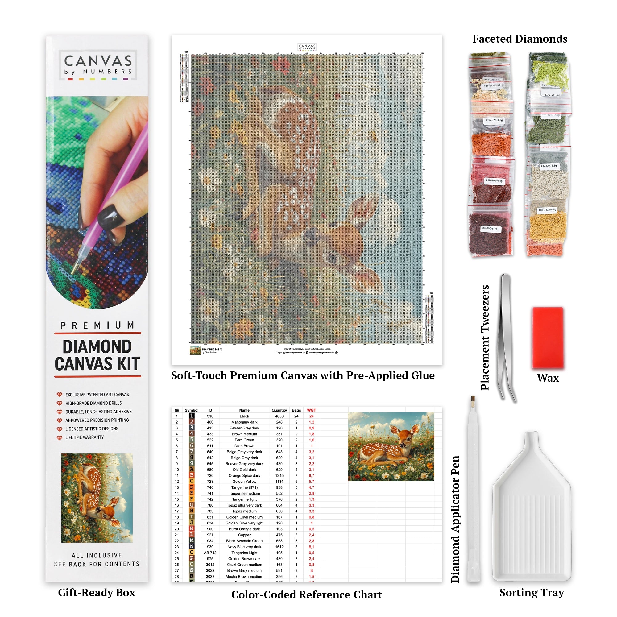 Diamond painting kit with a sweet fawn and blooming meadow