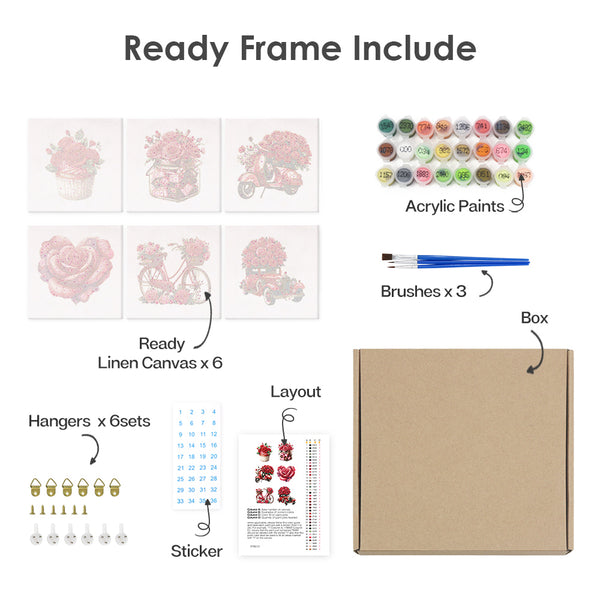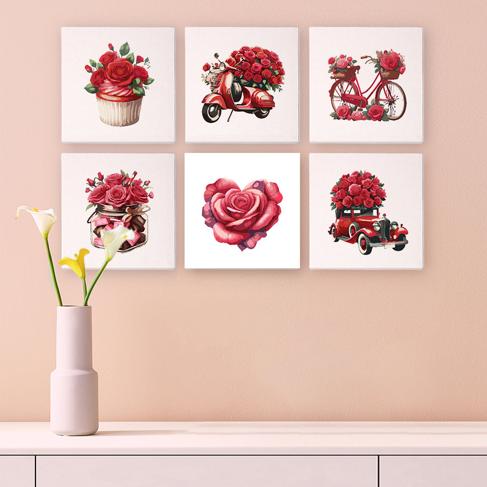 If you love elegant florals, vintage charm, and heartfelt themes, the Love & Roses Mini Paint by Numbers Set is perfect for you. Each mini canvas captures the timeless beauty of blooming red roses. You’ll find jars of sweets, scooters, and classic cars overflowing with petals. This set combines art with sentiment and relaxing creativity.