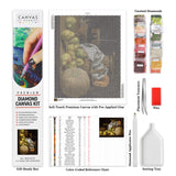 Whether you're a beginner or experienced in diamond painting, our 'Still Life with Melon and Pears' kit offers a rewarding creative experience. Each sparkling diamond helps build the depth and texture of the melon, pears, and surrounding details, creating a stunning visual effect. Take your time and enjoy crafting this timeless artwork, adding beauty and sophistication to your space one diamond at a time.