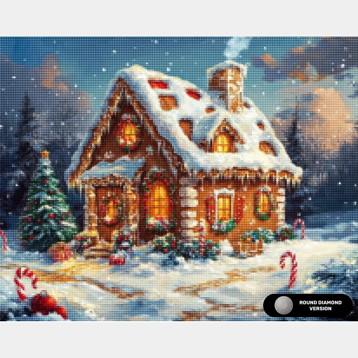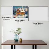 This Sweet Winter Retreat diamond painting shows a quiet home in the woods, surrounded by snow and stillness. The warm windows, snowy roof, and tall pines give it a cozy feel without too much complexity. If you like winter scenes that are peaceful but not overly busy, this one's a relaxing project to spend time with.