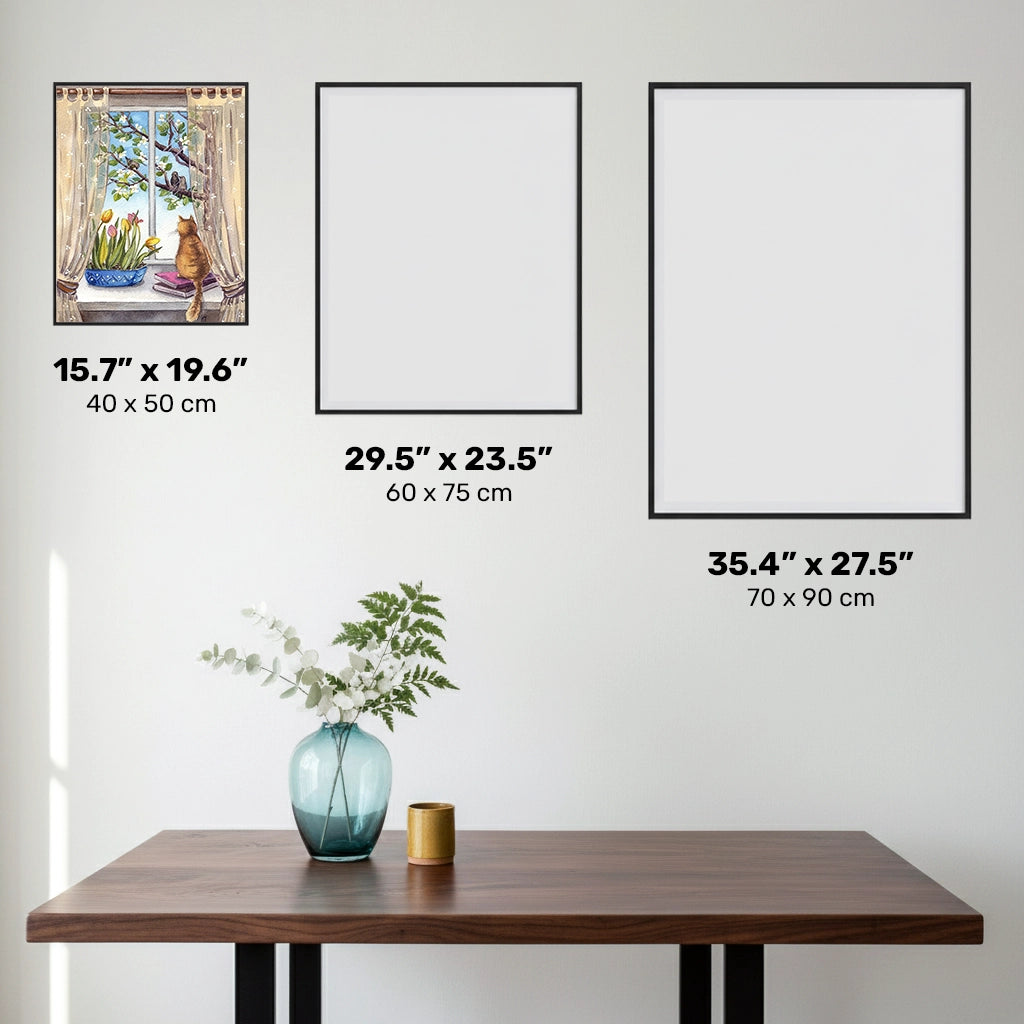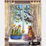 Experience the serene beauty of "A Peaceful Morning" with our diamond painting kit. This design features an adorable cat gazing out of a window surrounded by vibrant blossoms, capturing the peaceful charm of a quiet morning. Perfect for cat lovers and crafters, each diamond placed enhances the sparkle and warmth of this delightful scene, bringing a touch of tranquility to your decor.