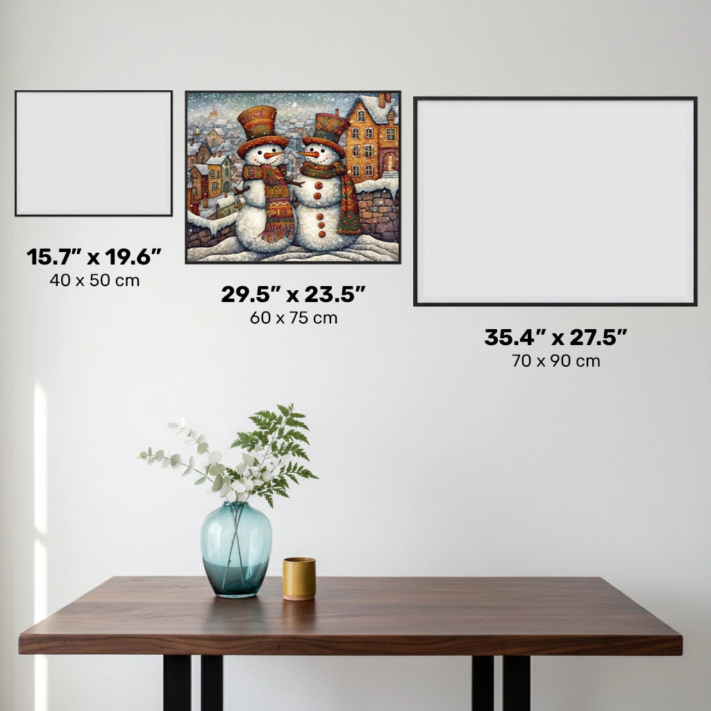 Experience the magic of the holiday season with our "A Magical Season" diamond painting kit. This charming design features two snowmen dressed in festive hats and scarves, set against a snowy town background. Perfect for adding a touch of holiday spirit to your decor, each diamond captures the sparkle and warmth of a winter wonderland, making it a joyful project for the season.