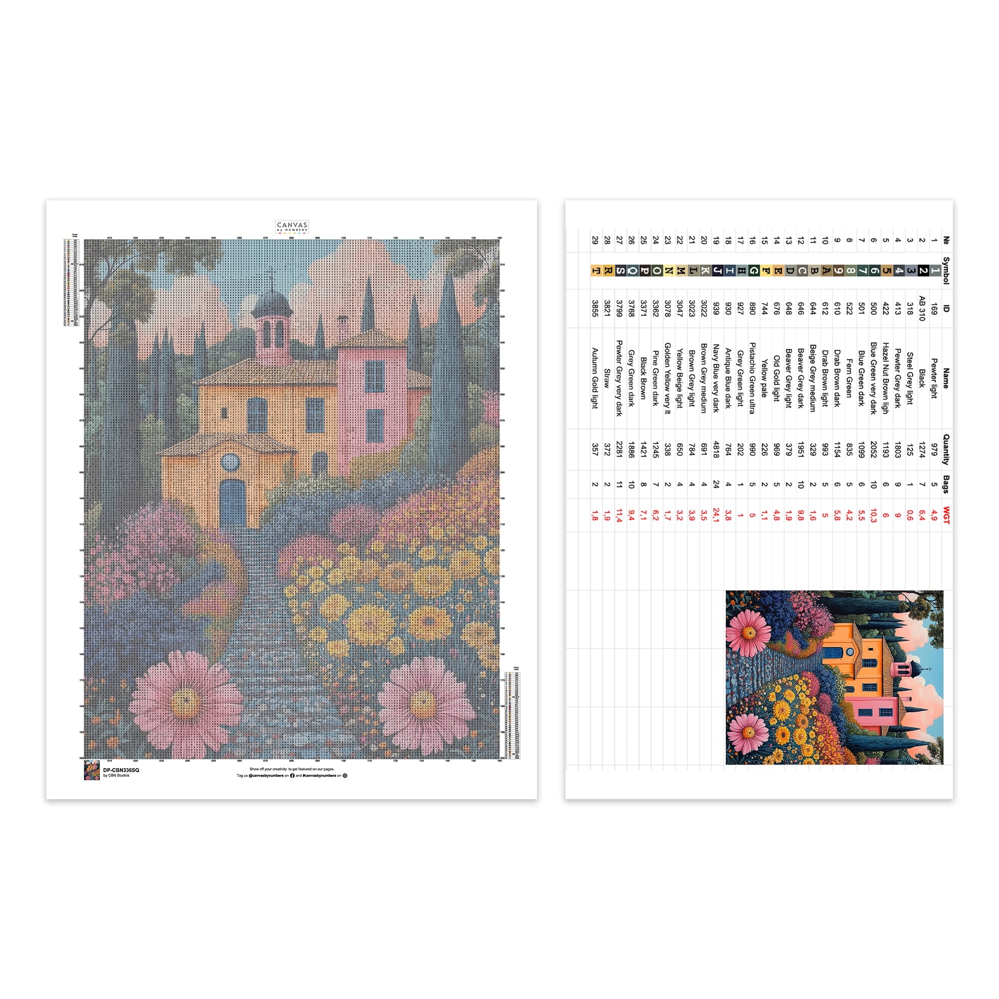 This Manor in Provence diamond painting brings together the warmth of old stone, soft garden paths, and tall trees. The home is framed by nature and open space, making it feel relaxed and inviting. The design is clear and easy to follow, perfect for when you want a break from busier or darker themes.