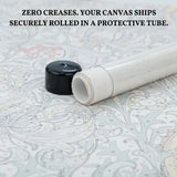 - Rolled (No Frame) – The canvas is shipped rolled inside a sturdy PVC tube. It’s easy to store, travel with, or take to your local framer.