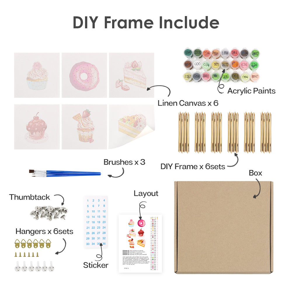 If you love desserts and have a creative side, the Sweet Moments 2 mini paint by numbers set is for you. This collection includes six charming dessert-themed paintings featuring everything from frosted cupcakes to tasty slices of strawberry and fruit cake. Each piece is designed in a small 6x6 in format, making it fun and easy to finish in one session.