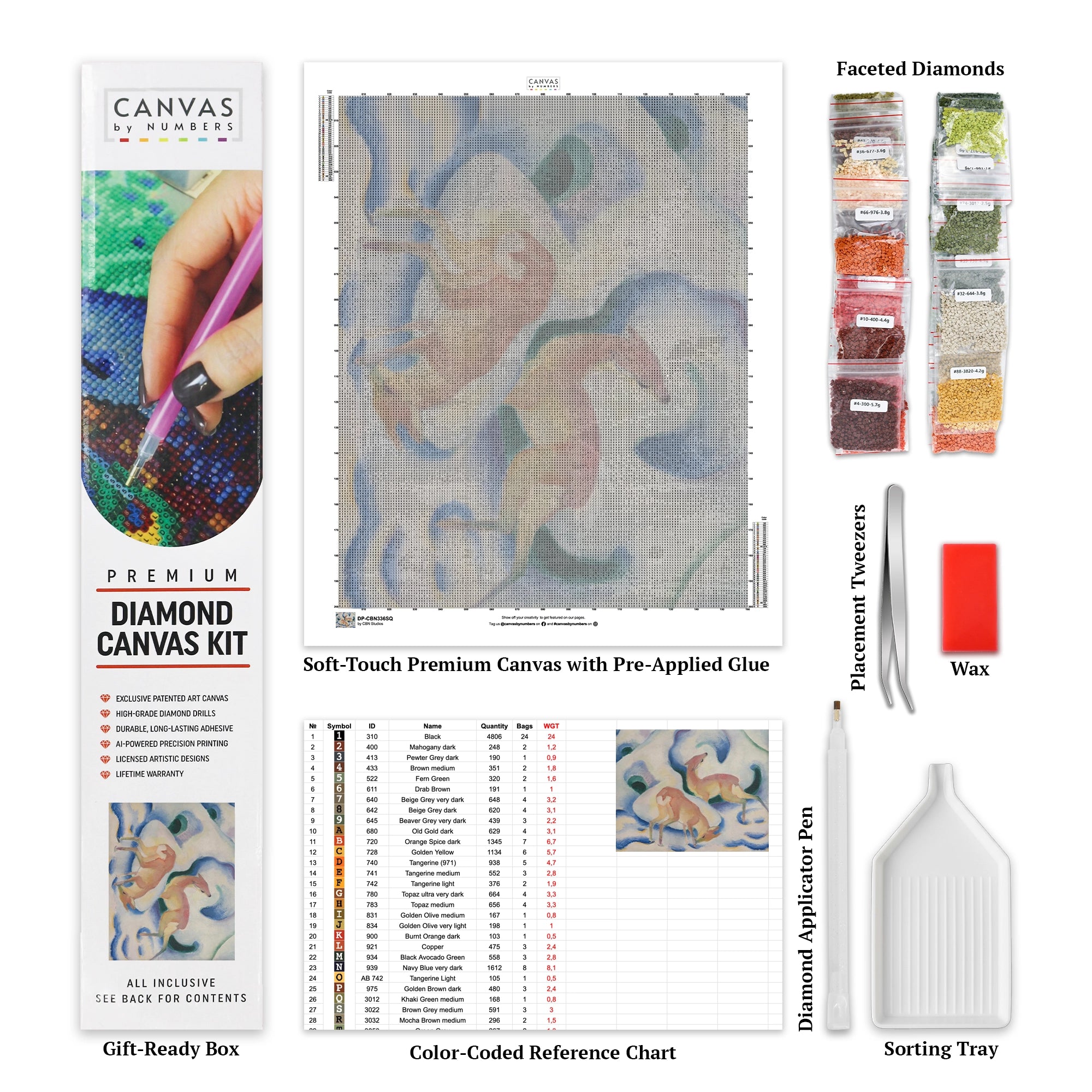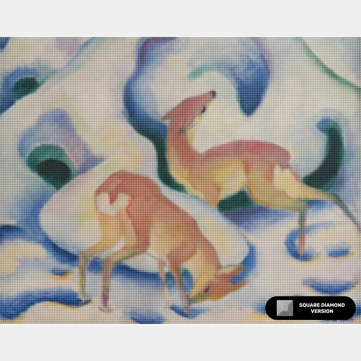 This Deer in the Snow diamond painting brings Franz Marc’s winter landscape into a creative, hands-on format. The composition uses fluid lines and a cool, limited palette to create a mood of calm and stillness. As you work through the piece, the shapes of the deer and the gentle curve of the trees begin to emerge, offering a steady, rewarding rhythm. It's a great choice for anyone who enjoys modern art and quiet, nature-focused designs.