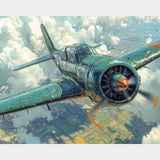 This Sky Patrol diamond painting captures a powerful aircraft slicing through clouds with cinematic intensity. The weathered metal, spinning propeller, and sweeping landscape below create a sense of speed and drama. It’s a bold tribute to classic aviation and the thrill of flight.