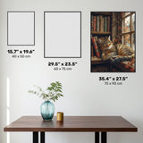 This The Book Nook diamond painting brings you into an unassuming shop of books and warmth. The shelves are filled with textured, aged volumes from floor to ceiling, and a gold tabby cat sleeps in a sunbeam on one shelf. It's a detailed, welcoming diamond painting for anyone who enjoys bookish and warm places.
