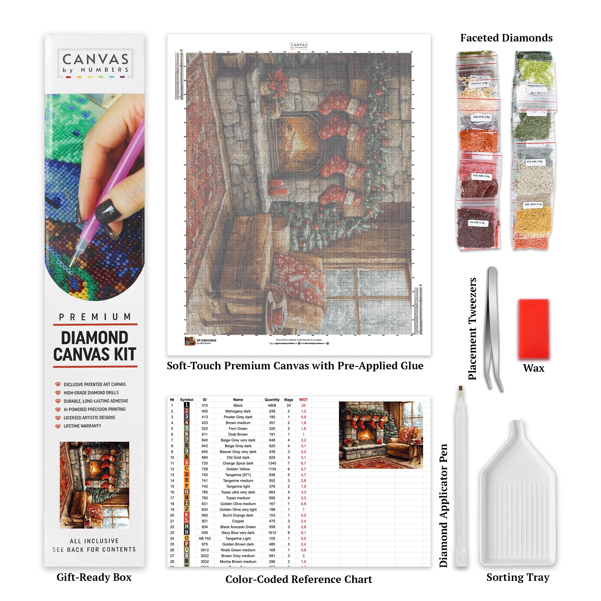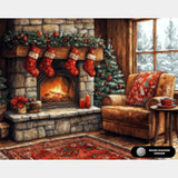 This Warmth of Christmas Eve diamond painting shows a decorated fireplace lit by candles, with stockings, garlands, and soft shadows across the room. It’s a quiet kind of festive—not loud or flashy, just calm and full of little details that are nice to work through. If you like winter nights indoors and simple holiday comfort, this one’s a good fit.