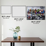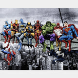 Celebrate your favorite superheroes with our "Lunch Atop A Skyscraper" diamond painting kit. This unique artwork brings together iconic characters like Superman, Batman, Captain America, and The Hulk in a nostalgic, retro-inspired scene. Perfect for Marvel and DC fans, this kit lets you enjoy a fun, creative activity while recreating a cherished moment featuring beloved heroes.