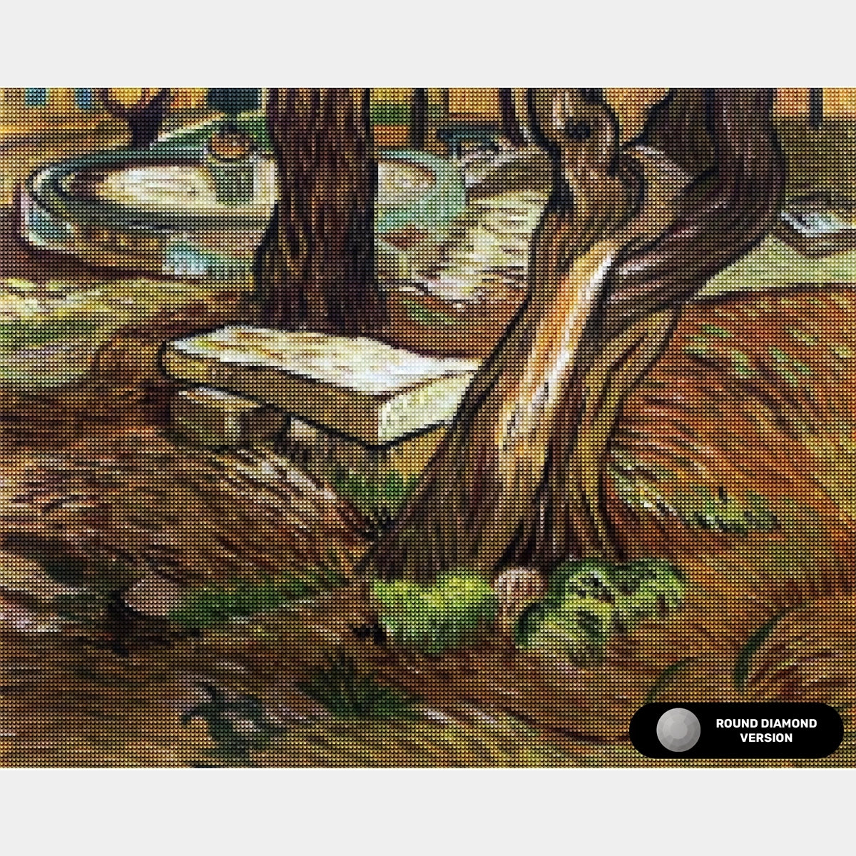 Vincent van Gogh's period at the Saint-Paul-de-Mausole asylum was one of profound creativity, marked by an intense exploration of both personal suffering and the beauty of his immediate surroundings. "The Stone Bench at Saint-Remy" represents a synthesis of these themes, showcasing his unique ability to capture the emotional resonance of landscapes and structures through vibrant colors and expressive brushwork. This diamond painting kit offers enthusiasts a way to engage deeply with Van Gogh’s techniques, providing a meditative experience that reflects both the turmoil and tranquility of his life.