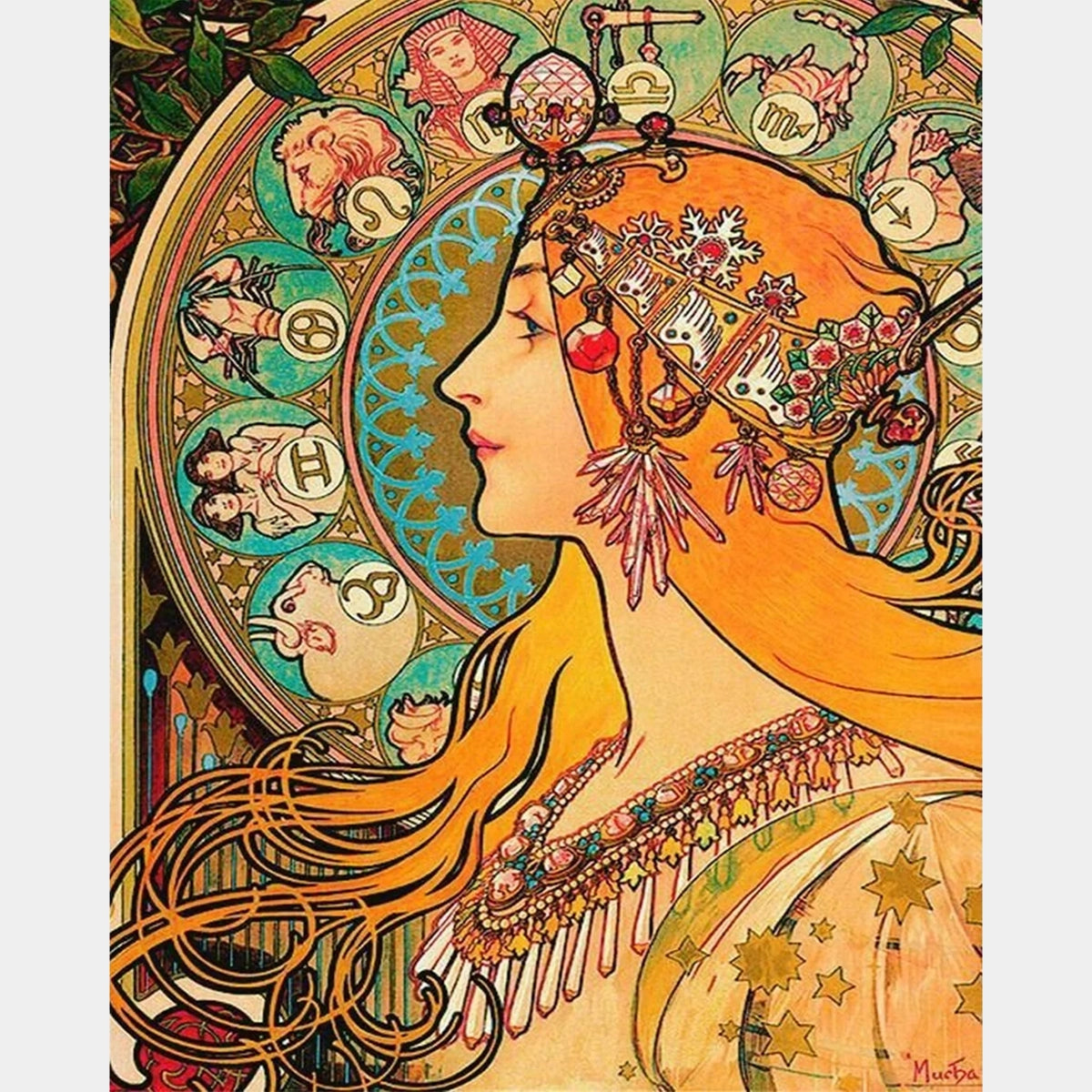 Our 'Zodiac' diamond painting kit provides an engaging and creative experience for art lovers and diamond painting enthusiasts alike. With carefully marked sections, you'll be able to recreate Mucha's dazzling work with ease, adding a touch of historical charm to your collection. Whether you're a seasoned crafter or new to diamond painting, this shimmering tribute to Alphonse Mucha’s genius is sure to leave a lasting impression.