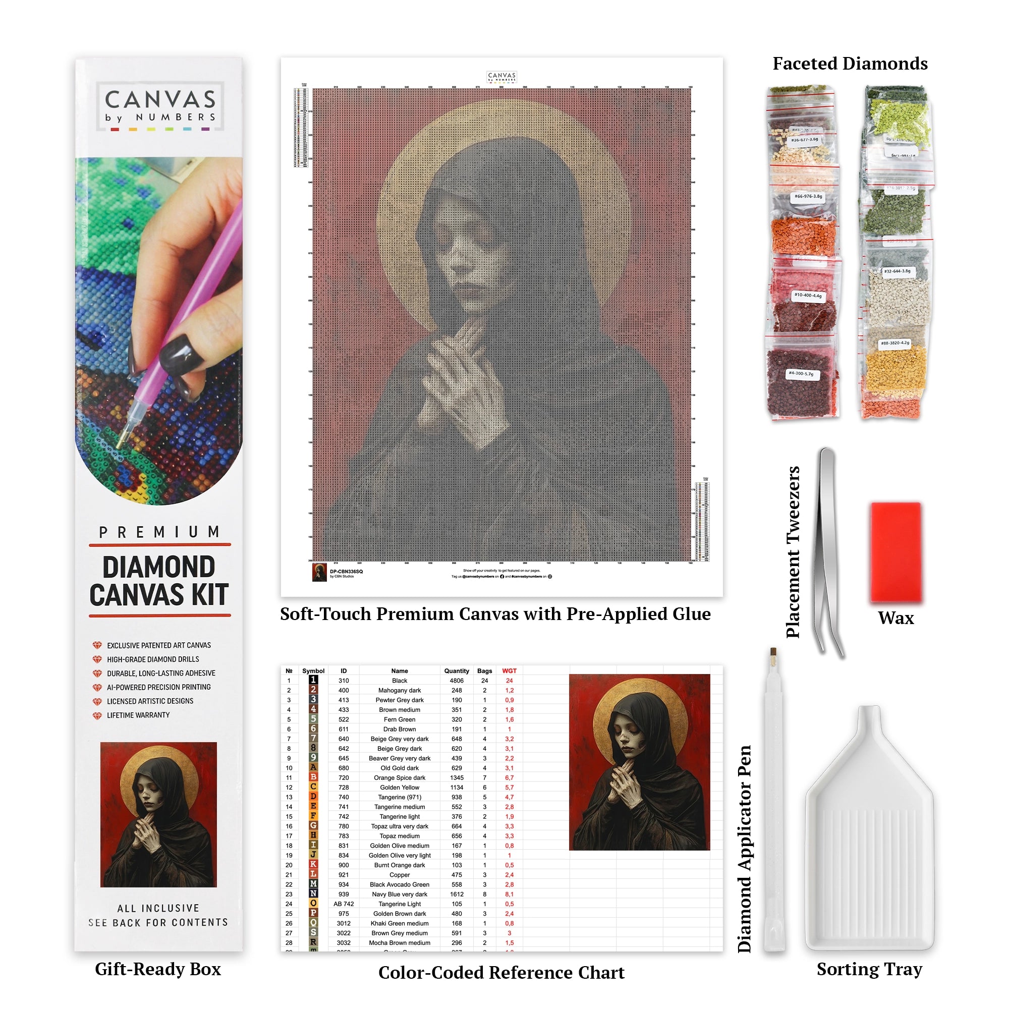 With its rich shadows, skeletal form, and dramatic lighting, this gothic diamond painting kit brings eerie sophistication to your workspace. The layout is detailed but clear, offering a steady, rewarding pace. Whether you're a fan of gothic art or just looking for something beyond the usual, this piece stands out with moody depth and refined texture.