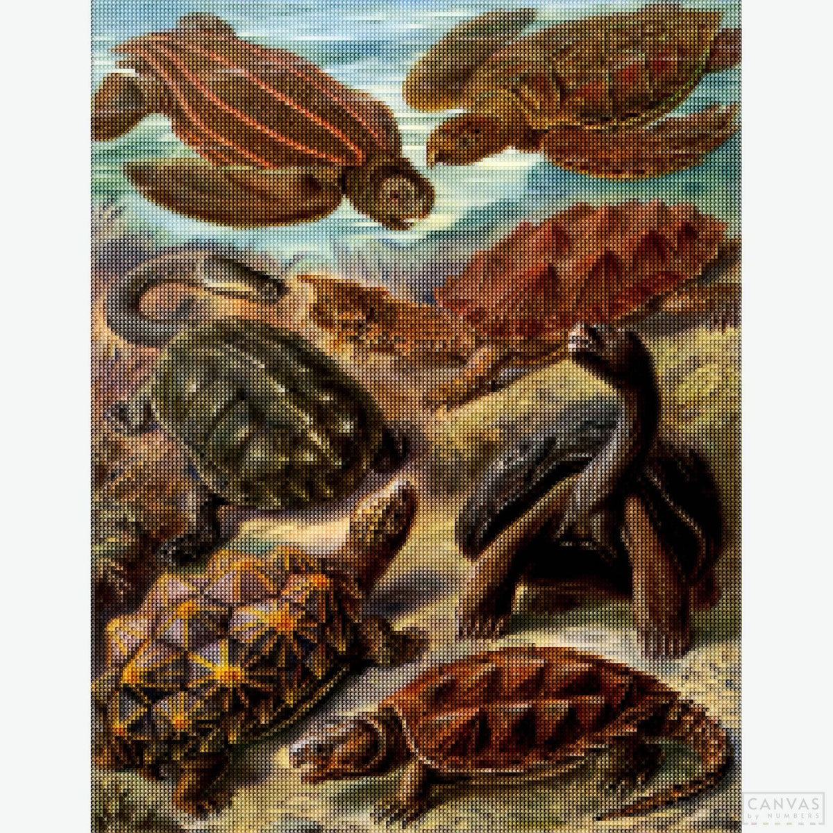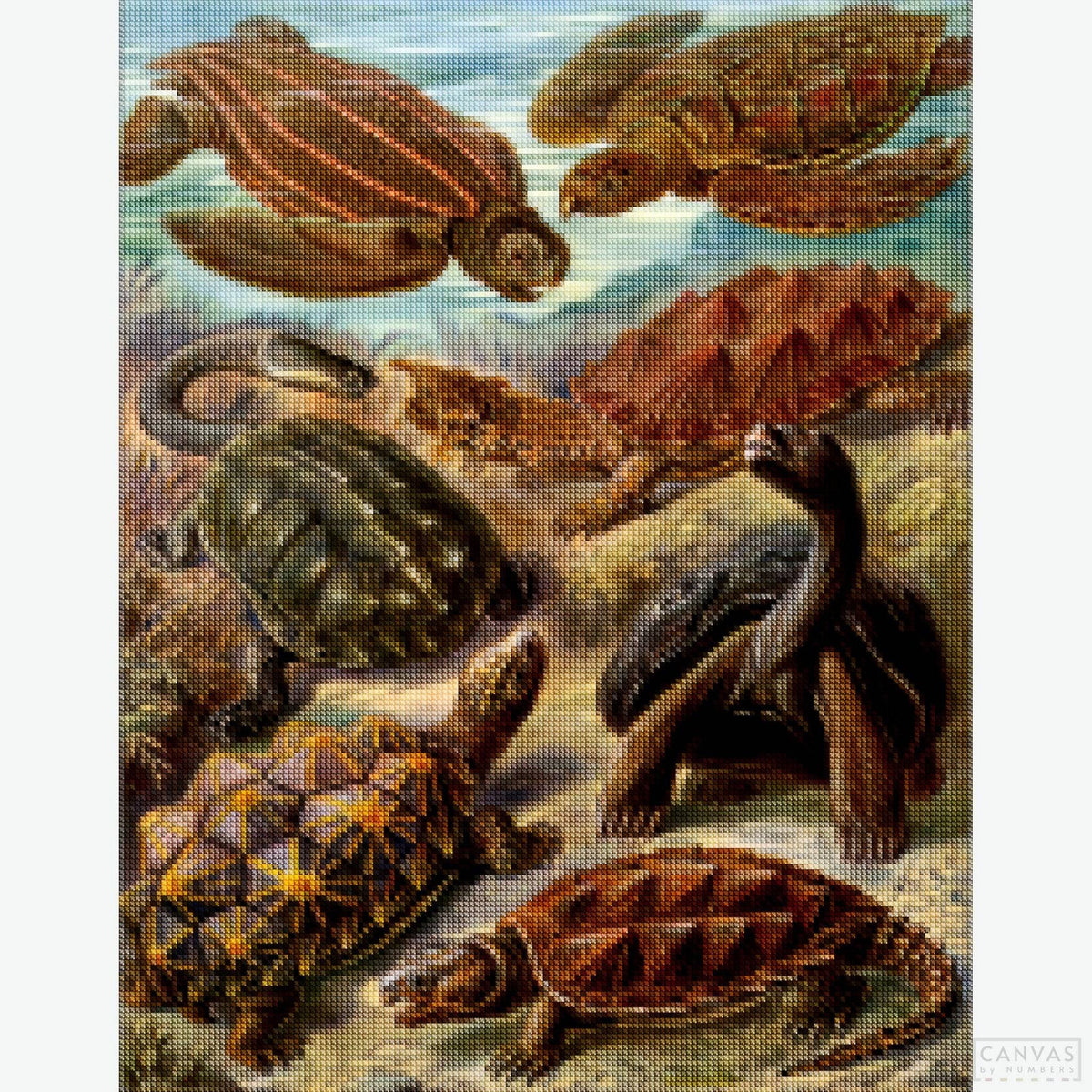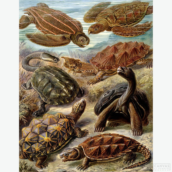 This Chelonia diamond painting draws from the detailed scientific illustrations of Ernst Haeckel, known for capturing the complexity and symmetry of nature. The sea turtle design is rich with fine lines and layered structure, offering a steady and focused experience for diamond kit lovers who appreciate depth and accuracy. It's a strong choice for anyone drawn to marine biology, vintage illustration, or natural history art with a scientific edge.