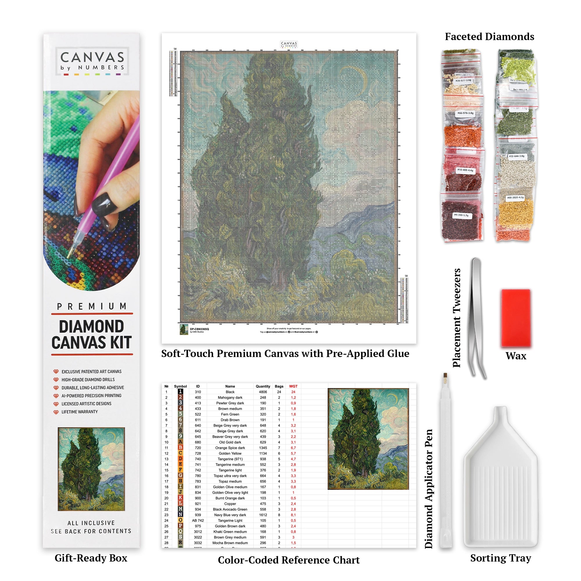 Cypresses Diamond Painting Kit - Van Gogh’s Iconic Landscape