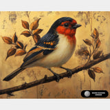 This Golden Swallow diamond painting showcases a beautifully detailed bird perched on a branch, surrounded by warm golden foliage. The rich colors and textured background make the artwork both refined and eye-catching, perfect for creating a luxurious finished piece.
