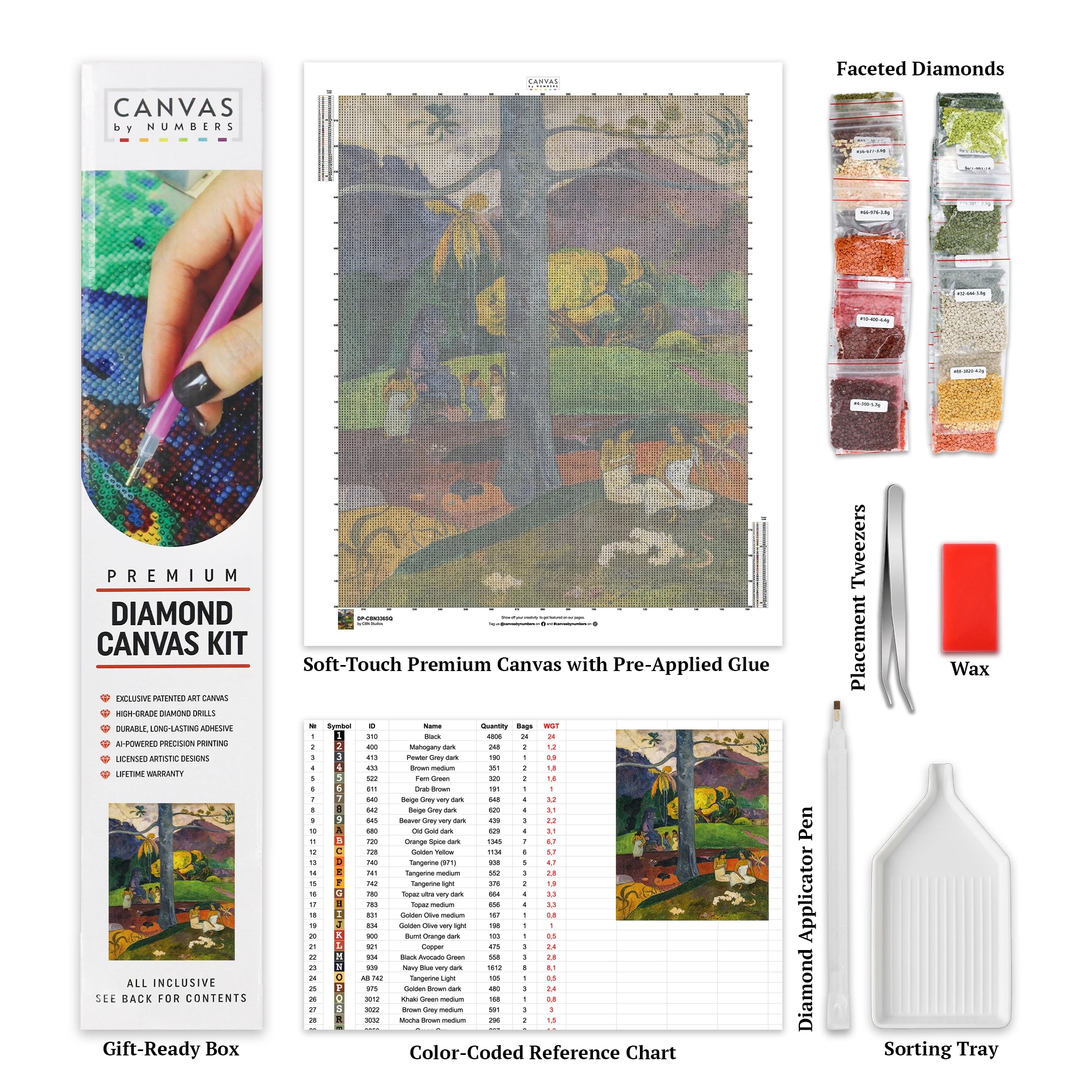 Immerse yourself in the vibrant and exotic landscape of Tahiti with our 'Mata Mua' diamond painting kit. This artwork, created by Paul Gauguin, captures the timeless beauty and serene atmosphere of the island. The bold colors and graceful figures bring to life Gauguin's unique artistic style and deep appreciation for Tahitian culture. Whether you're new to diamond painting or a seasoned artist, this kit provides a delightful and creative experience.