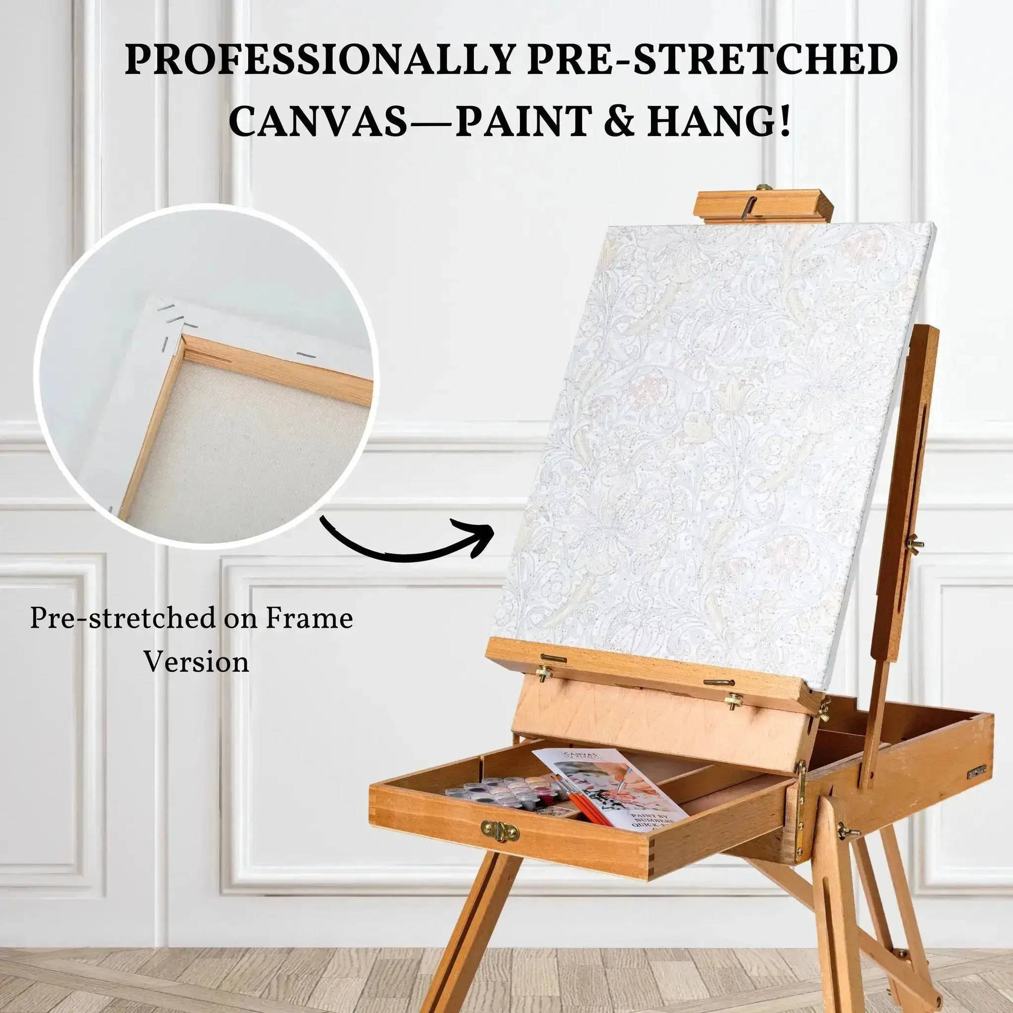 - Pre-Stretched on Frame – The canvas arrives already mounted on a wooden stretcher frame. Start painting right away and hang it up as soon as you're done.
