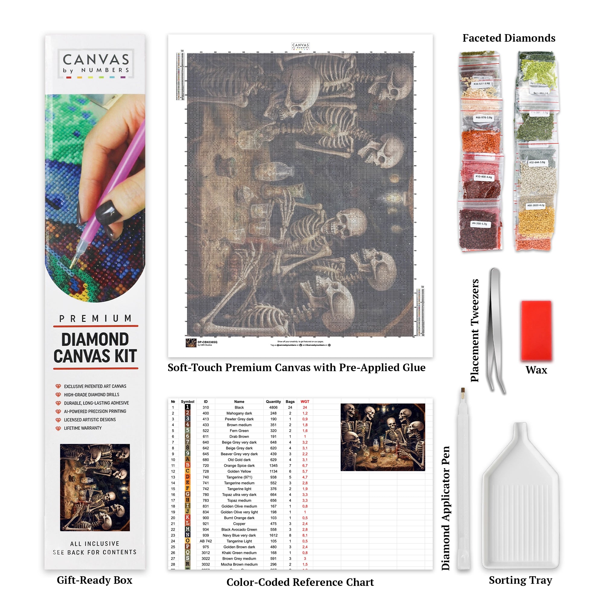 Experience the whimsical and humorous side of Halloween with our 'Afterlife Laughter' diamond painting kit. This sparkling artwork features a lively group of skeletons sharing drinks and laughter, making it a perfect addition to your festive Halloween decor. Each diamond you place adds a shimmering touch to this lighthearted scene, creating a stunning display that brings out both the spooky and fun aspects of the season. Whether you're a seasoned diamond painter or trying it for the first time, this kit offers an enjoyable and creative way to celebrate Halloween.