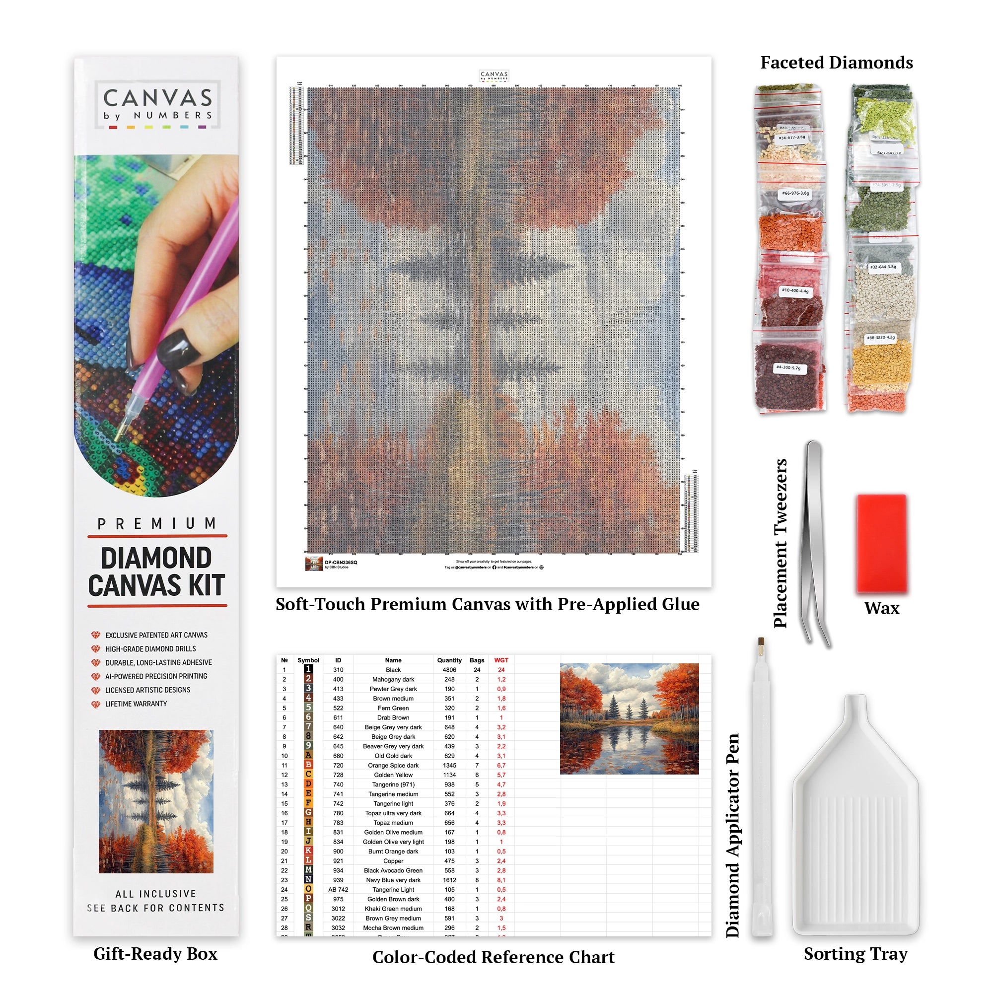 Designed to translate every brushstroke into sparkling detail, this fall landscape diamond painting transforms warm tones and gentle reflections into a vibrant, textured artwork. The more diamonds you place, the more the scene comes alive with depth and glow.