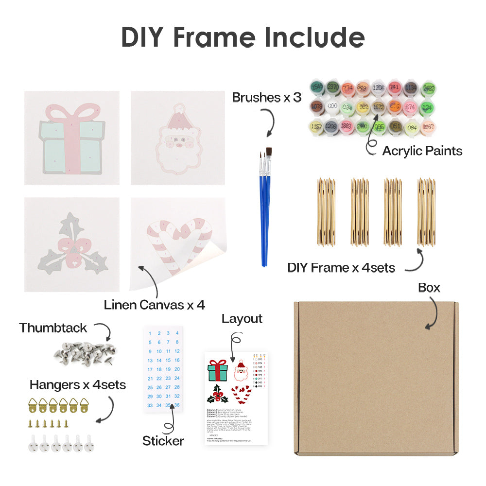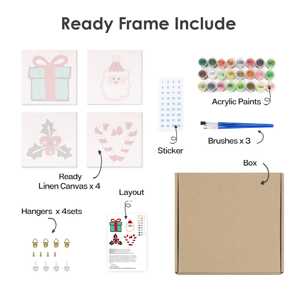 Paint by Numbers. Festive Icons. Mini Kit. A simple and enjoyable way to get into the holiday spirit. This Paint by Numbers Mini set is a perfect, quick little project with four holiday images.