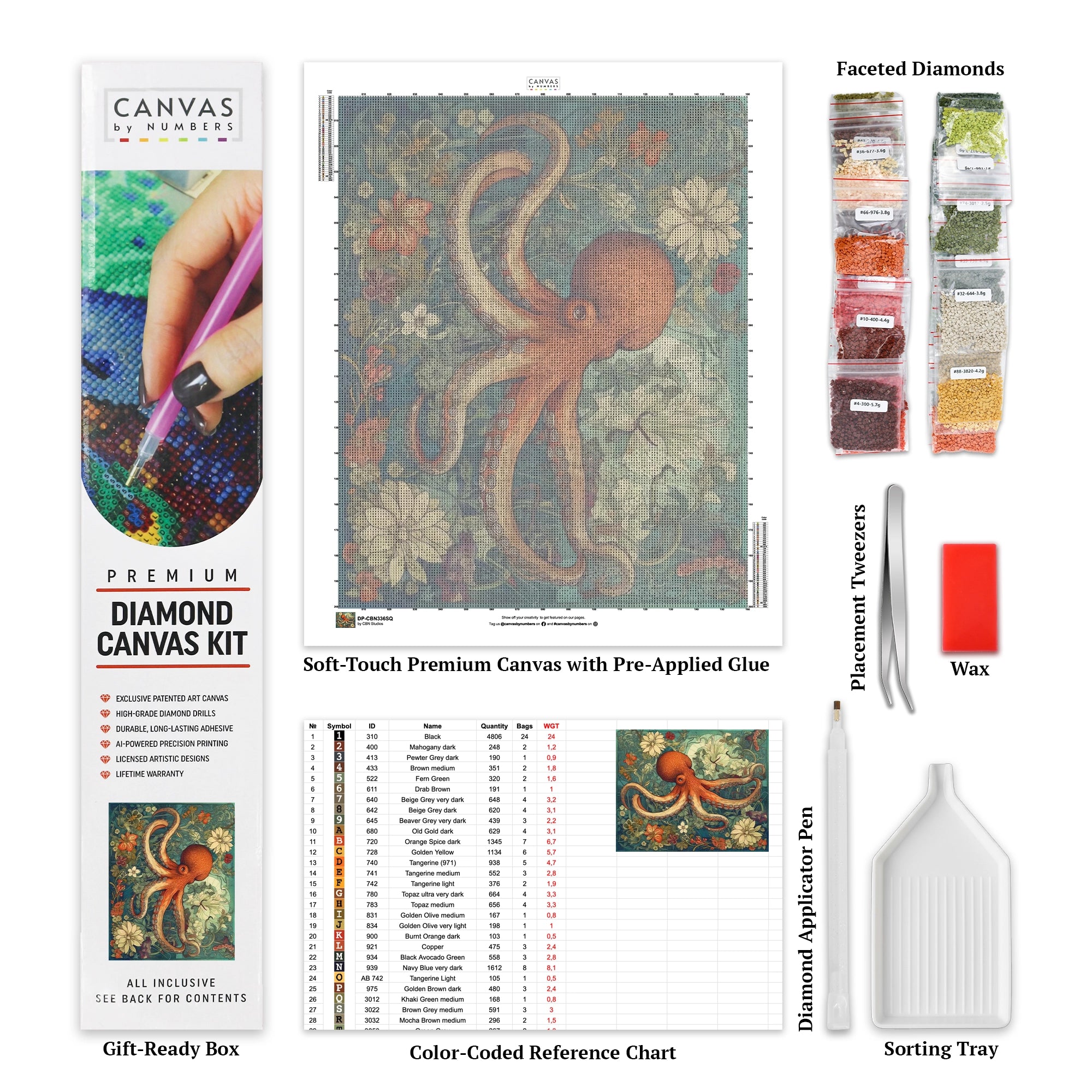 Immerse yourself in the enchanting beauty of the ocean with our *Flowery Depths* diamond painting kit. This design captures the grace of an octopus gliding through luminous sea flowers, creating a breathtaking underwater scene. Perfect for marine life enthusiasts and crafters, each diamond enhances the brilliance and depth of this aquatic masterpiece.