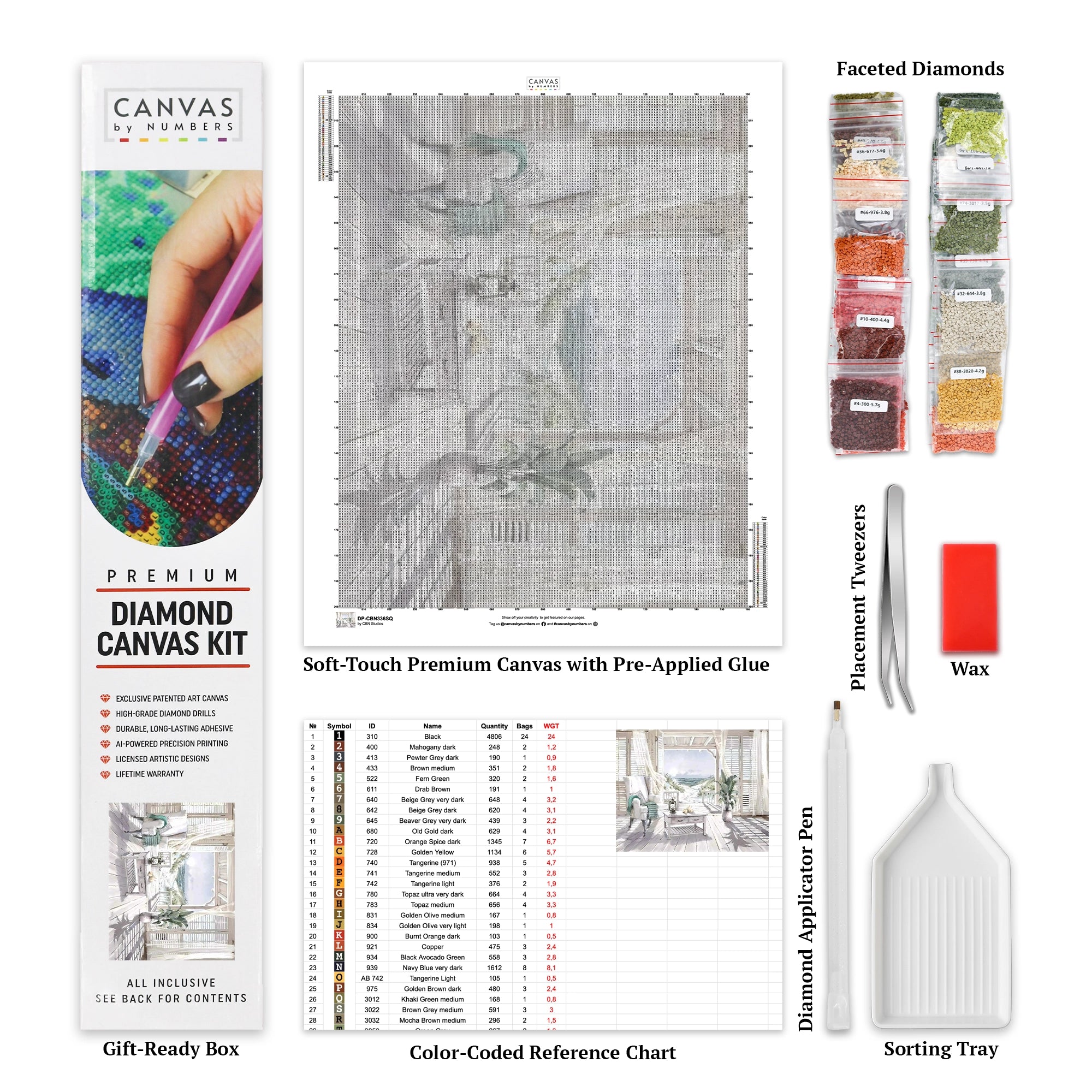 Celebrate the peaceful allure of the beach with the *Sea Whispers* diamond painting kit. This project offers a creative escape into the soothing hues and reflective textures of Richard Macneil’s art. Ideal for those seeking relaxation and artistic expression, this kit transforms a serene seaside view into a sparkling masterpiece for your home.