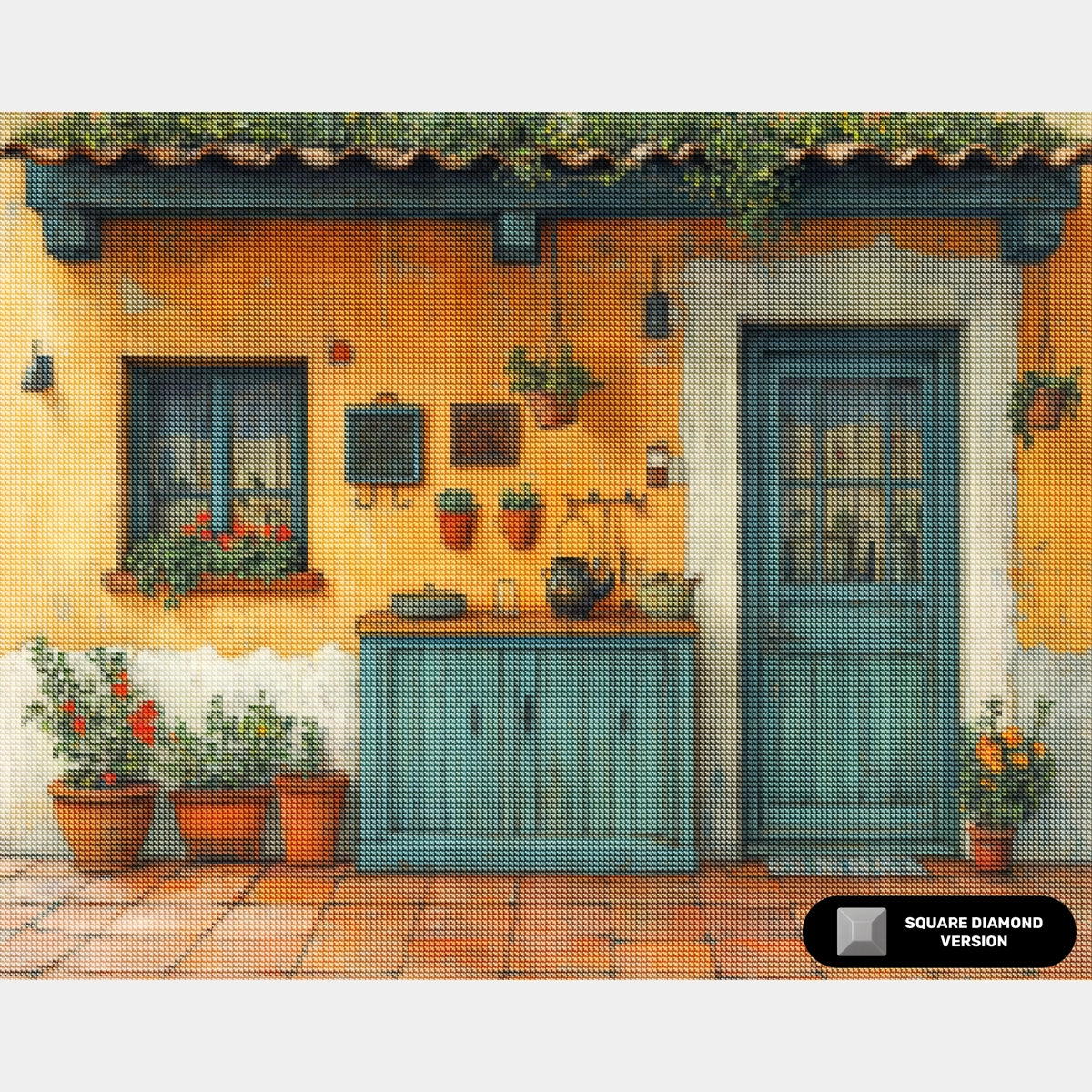 This rustic home diamond art kit blends earthy textures, vivid colors, and handcrafted details, creating a relaxing and inviting project for anyone who enjoys Mediterranean atmospheres and homely outdoor scenes.